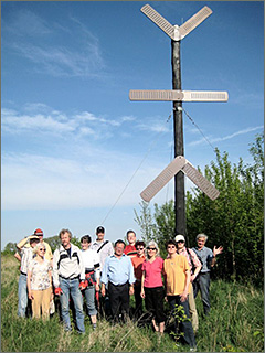 ![]() Gruppenfoto der Telegraphenfreunde aus Potsdam Die Potsdamer Interessengemeinschaft OT4 hat schon viele ehemaligen Telegraphenstationen besucht und zu den Exkursionen und Radtouren viele Freunde eingeladen. Ein Ausflug zu den Standorten der Stationen unterstützt die Vorstellungskraft vor Ort am besten. Das Gemeinschaftserlebnis hat auch dazu beigetragen, dass die Forschungsarbeit in Archiven der Museen intensiviert worden ist. |