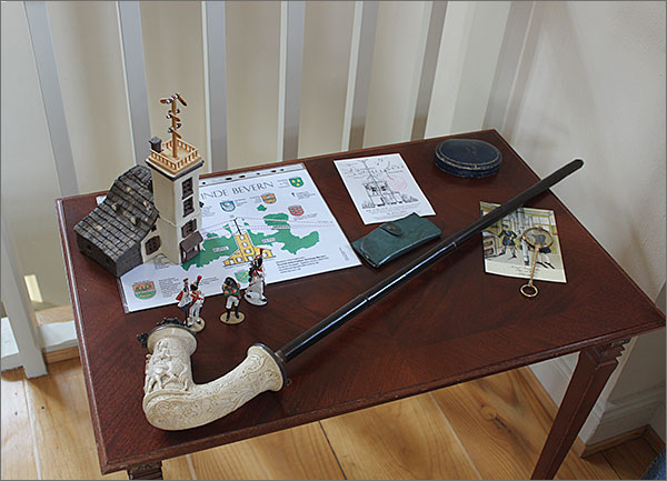 Das Turmzimmer dient heute der Muße, hier spielt Herr Schallenberg auf seiner Gitarre oder pflegt die Kunst des Schriftsetzens. Er war überrascht vom Besuch der Telegraphenfreunde aus Preußen und freute sich über den Erfahrungsaustausch. |